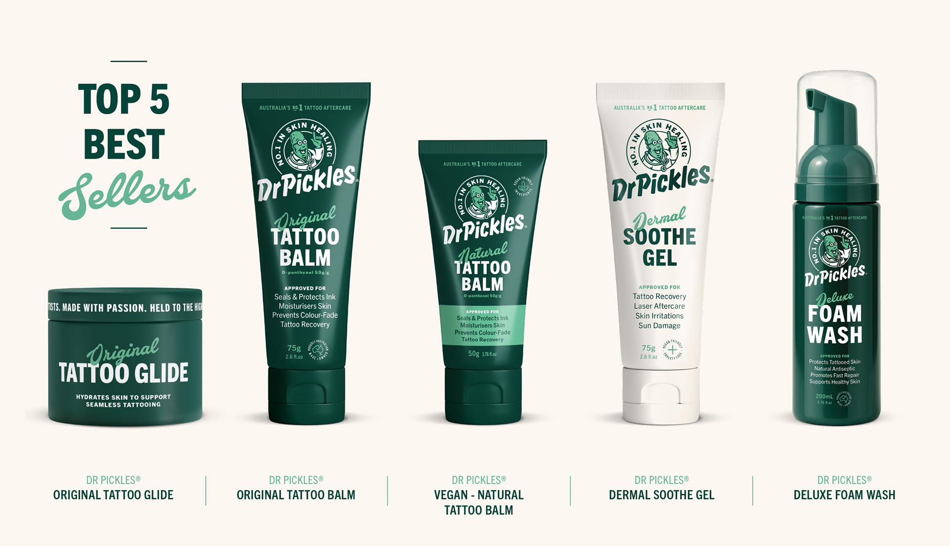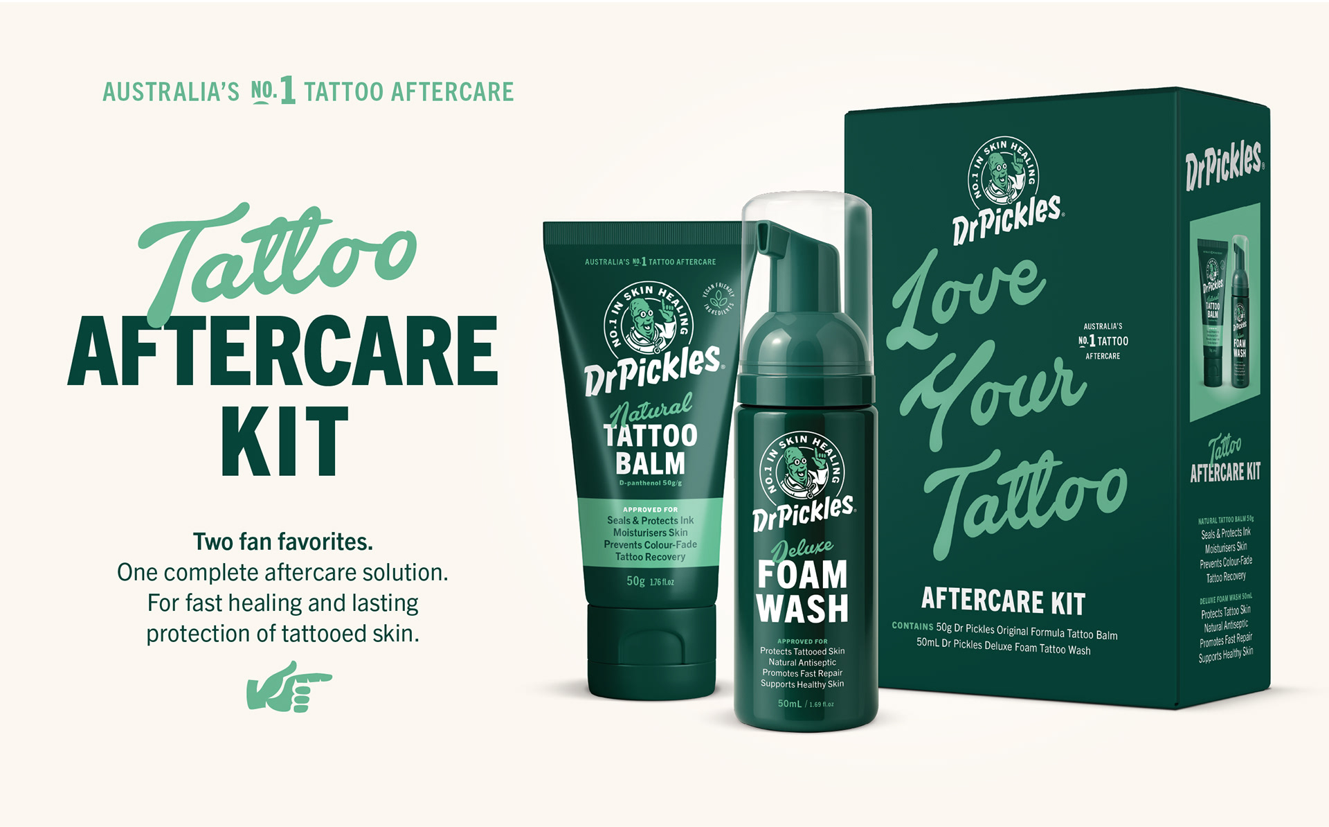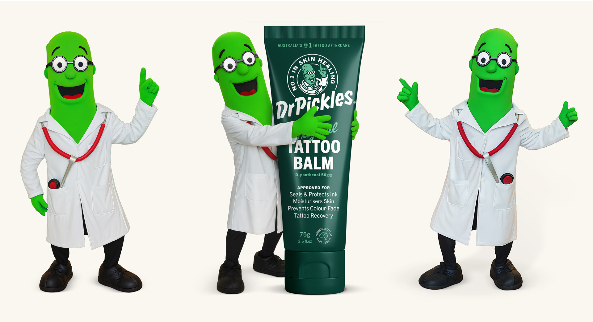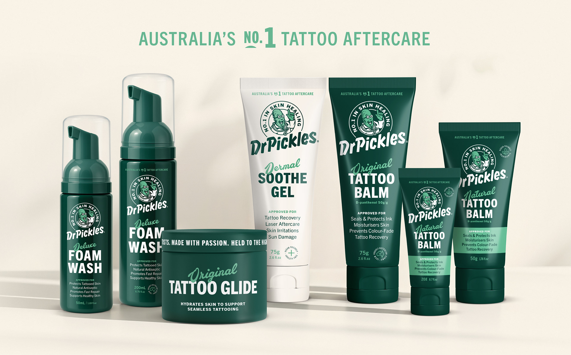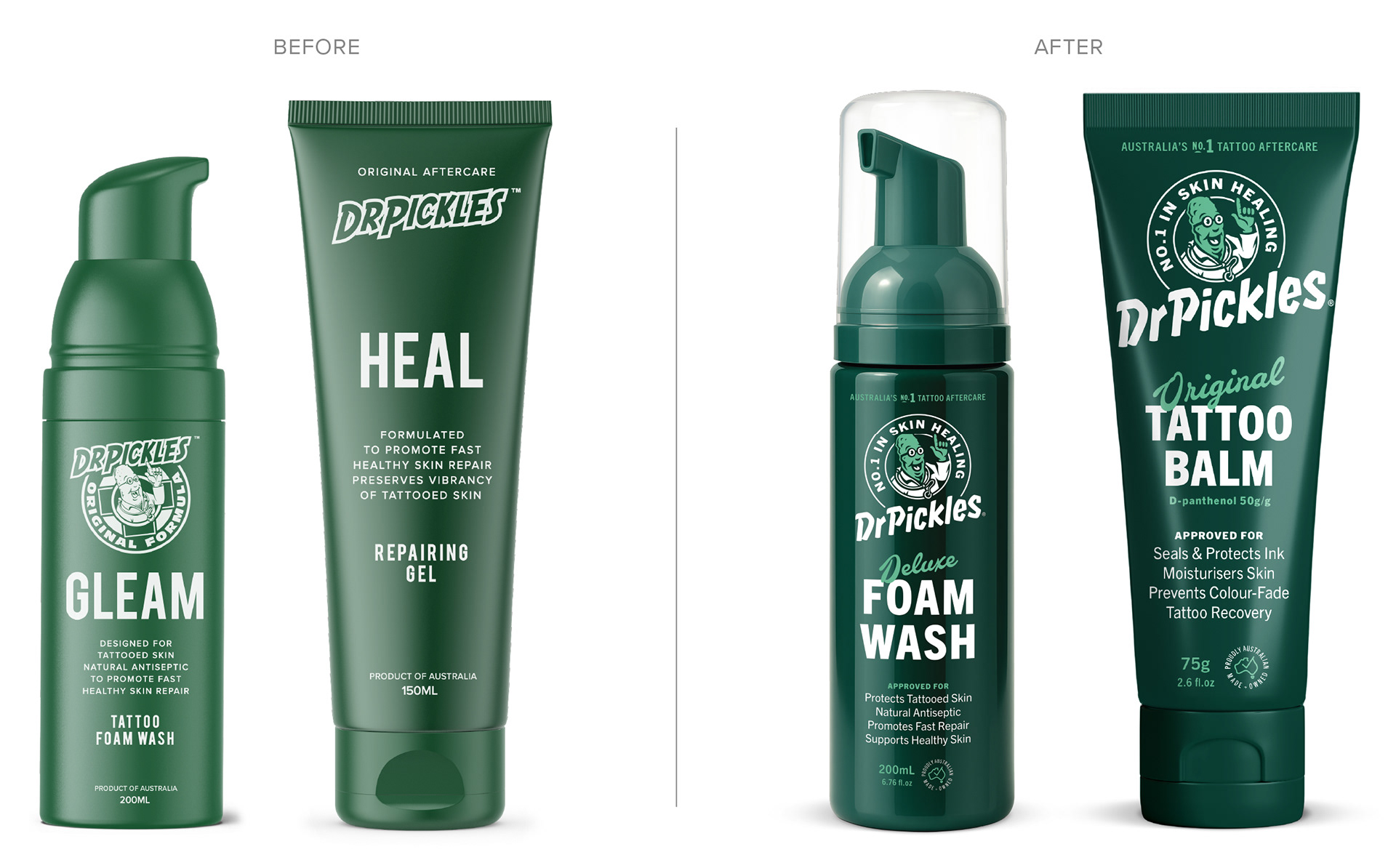 Since its beginnings in 2012, Dr Pickles has cemented its place as Australasia’s leading Tattoo Aftercare brand. Tasked with taking the brand to the next level, we reimagined Dr Pickles with a confident, contemporary style - preserving its cult personality while making it more accessible to a global retail audience. The result is a revitalised identity that proudly communicates its position as the No.1 in Skin Healing.